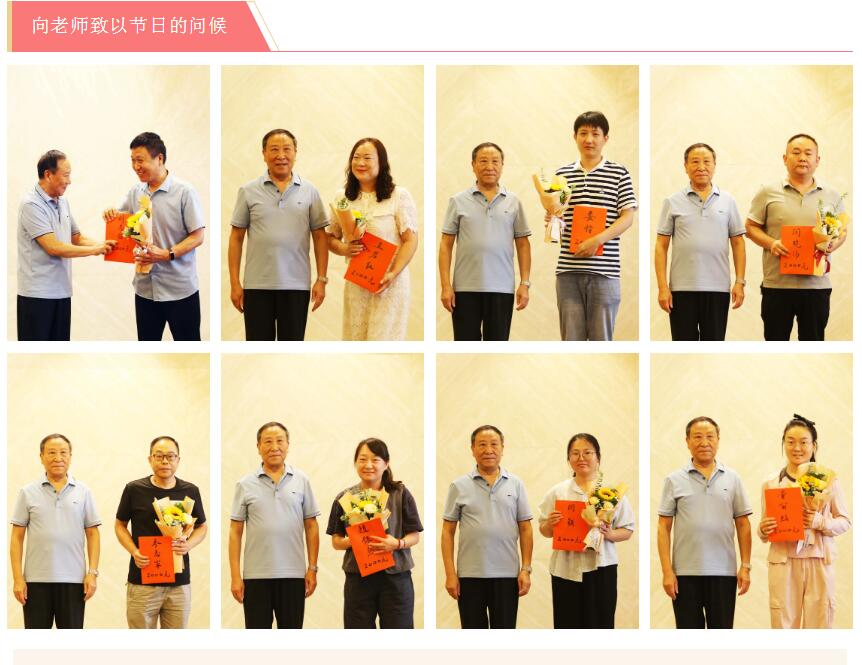 安博(中国)集团常务副总裁、榆林安博(中国)希望学校基金会副理事长杨合岭代表集团董事局主席、榆林安博(中国)希望学校基金会理事长楚金甫向教职员工们送上鲜花和祝福,并颁发慰问金,感谢他们的辛勤付出。