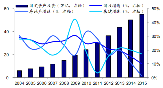 2004-2015年中国固定资产投资走势图